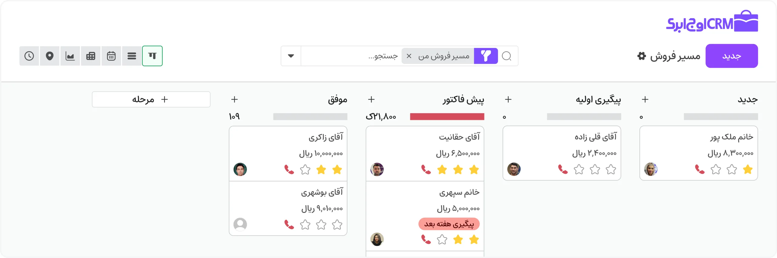 نرمافزار CRM اوج ابری جامعترین سیستم مدیریت ارتباط با مشتریان و مدیریت منابع سازمانی است که با هدف تسهیل همکاری تیمی و یکپارچهسازی اطلاعات به بهبود فرآیندهای مختلف و پیادهسازی راهکارهای نوآورانه برای افزایش فروش میپردازد.