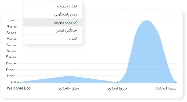 - گزارشگیری میانگین زمان پاسخدهی، تعداد چت و...