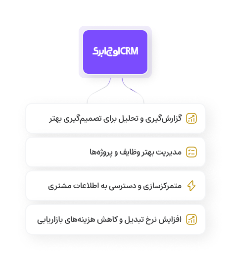 اوج ابری فرآیند فروش شما را استاندارد میکند، مشتریان جدید جذب میشوند و نرخ بازگشت مشتریان فعلی بالا میرود. گزارشهای دقیق به شما کمک میکند تصمیمهای بهتری بگیرید و همیشه جلوتر از رقبا باشید.