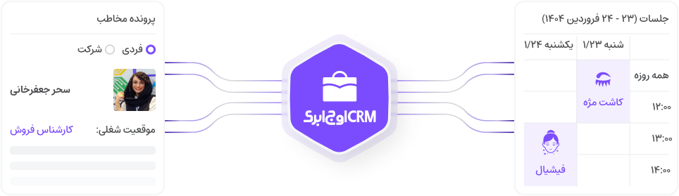 برای مدیریت کامل فرآیند جذب، پیگیری، رزرو وقت، ثبت سوابق مشتریان و ارتباط با مراجعین کلینیکهای زیبایی و درمانی را می توانید با استفاده از CRM اوج ابری نظارت و مدیریت کنید.